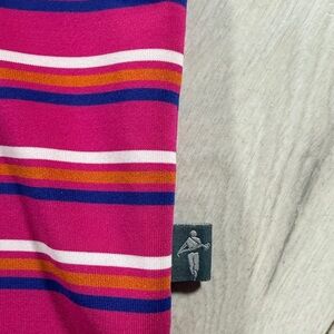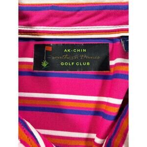 The Ak-Chin Southern Dunes Golf Club Striped Golf Shirt in size Medium is a stylish and functional piece of men's clothing made from a comfortable polyester/spandex blend fabric.