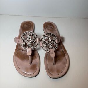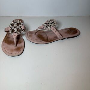 Tory Burch Miller Embellished Sandal Seashell Pink Leather Flat Summer Size 7.5