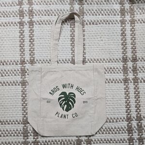 Bros Wirh Hoes Plant Co. Canvas Tote Bag with Green Monstera Leaf Design