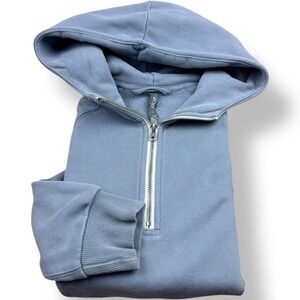 Vuori Womens Light Blue Quarter Zip Hooded Sweatshirt Organic Cotton Size XL