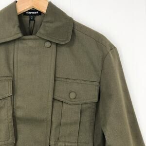 Express Utility Jacket Oversized Pockets Belt Cotton Twill Stretch Size XS Olive
