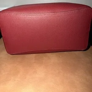 Chic Coach crossbody in rich burgundy leather. Sleek design with adjustable strap. Ideal for everyday elegance.