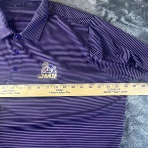 Antigua JMU Dukes Polo Shirt Mens XXL Purple Striped Short Sleeve Performance