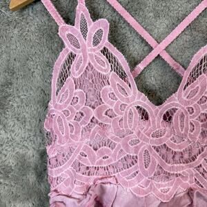 POL Pink Lace Ruffle Tank Top Peplum Tiered Crochet Bohemian Romantic Fairy L