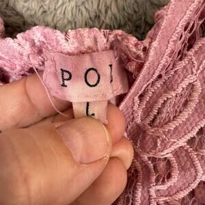 POL Pink Lace Ruffle Tank Top Peplum Tiered Crochet Bohemian Romantic Fairy L Large