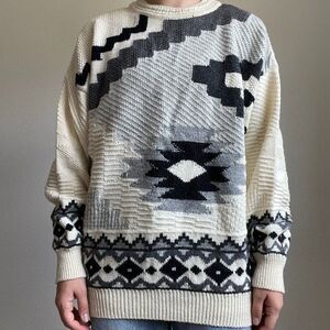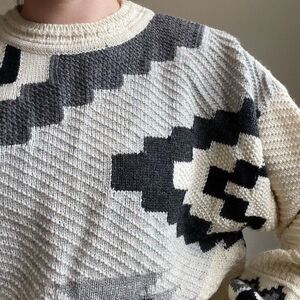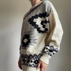 Beylerian Paris Vintage 80s Aztec Southwestern Geometric Wool Oversized Sweater