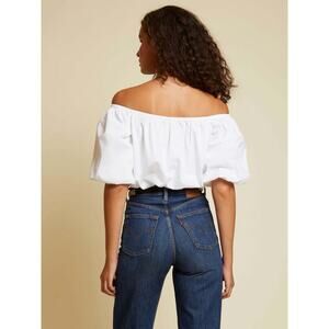 Nation Ltd Top Blouse Womens Small Cropped Bubble Puffy Sleeve White Poplin $158