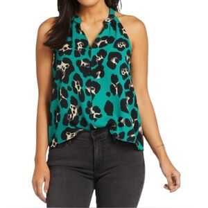Anthropologie Sunday In Brooklyn Green Cheetah Print Sleeveless Blouse Small