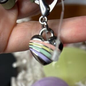 Elegant Coach wristlet in light green patent leather. Features embossed pattern and sleek design. Perfect for any occasion. Silver tone hardware and zipper top. Inside there are small pocket areas. Includes a detachable heart charm. Color is sold out. New with tags.