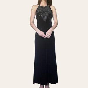 90s vintage sparkly black velvet high neck whimsigoth prom dress Rampage