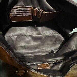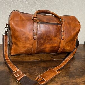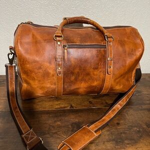 Stylish and durable brown leather duffel bag, perfect for travel and everyday use. In excellent condition like new!!!