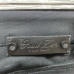 Point Zero Nicole Benisti skinny pants offer a sleek, edgy aesthetic with a mixed-media design featuring smooth fabric and faux leather panels. These pants are designed with functional zipper pockets at the thighs and classic patch pockets at the back, providing both style and utility. The slim fit and monochromatic black palette make them a versatile staple for any modern wardrobe. These pants are in excellent pre-owned condition. Wear these for a night out, a concert, or an edgy office look.