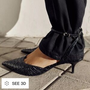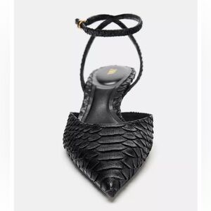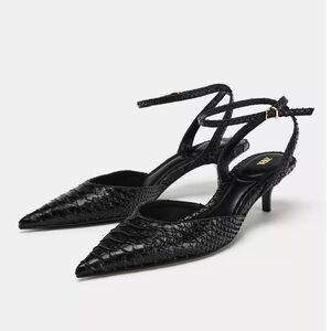 Zara NWT croc / snake animal print black embossed pointed toe kitten heels