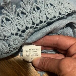 Terzo millennial 100% linen Embellished Blue Short Sleeve Boxy Blouse small