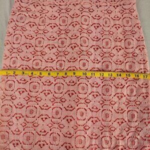 Light pink lace with coral red under lining.