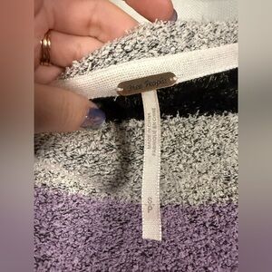 Free People Black Grey Purple Candyland Striped Crop Knit Sweater Size Small
