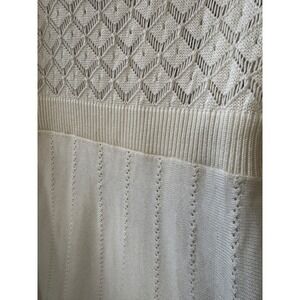 Ivory Knit Dress Short Sleeve Mock Neck Diamond Pattern L