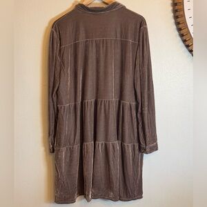 NWT Umgee + Velvet Tiered Shirt Dress Almond Color 1XL Long Sleeve Button Down