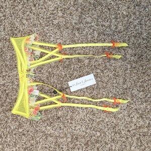 For Love And Lemons Mirabelle yellow floral cherry garter belt