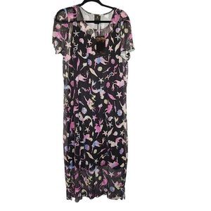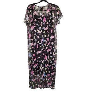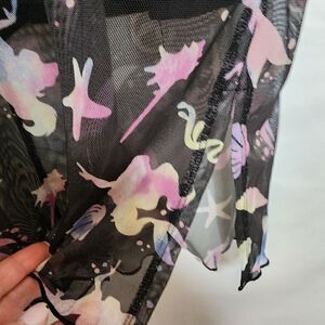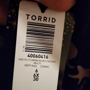 6X 30W Torrid Black Disney Little Mermaid Midi Mesh T Shirt Dress Princess pastel rainbow, slip dress, sheer mesh overlay, lettuce hem, side slit. NWT Torrid. Measurements for reference only approximately shoulder to hem 49" under arm to under arm 28" wt 14oz