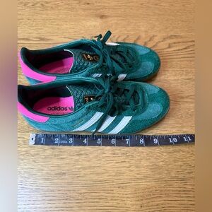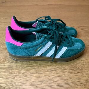 Adidas Gazelle Forest Green with Pink Suede Sneakers Gum Sole Size 6