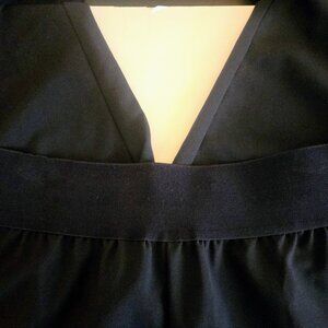 Never worn DG2 Diane Gilman black pleated pants with turned up cuff and front seam. Two side front pockets and wide comfort waistband, with front flat panel and wide elastic around the side and back. Great for office or night out.