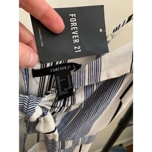 Forever 21 NWT Sleeveless Striped Jumpsuit Linen Blend Tie Front Chic Women's M