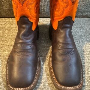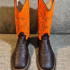 Old West BoysSix Row Stitch Western Orange and Rich Brown Cowboy Boots Size 6.0D