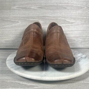 Born Kinney Boots Womens 10 Brown Leather Slip On Shoes Square Toe Ankle Booties