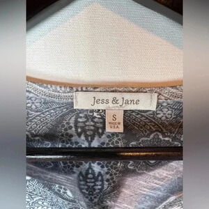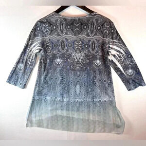 Jess & Jane Rhinestone flowy tunic top size S notch neck asymmetric hem artsy
