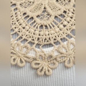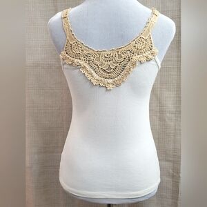 Democracy Cream Tan Crochet Ribbed Bohemian Tank Top Stretch Size Small