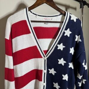 Vintage Talbots American Flag Cardigan Sweater Size Large Preppy Summer Holiday