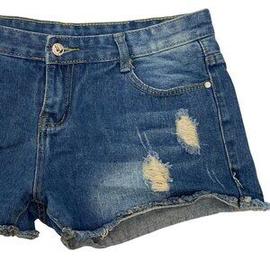 Jeans Low Rise Y2K Style Distressed Cut-Off Raw Hem Denim Blue Jean Shorts Sz 33