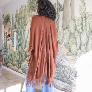 Brown Fringe Shawl-poncho