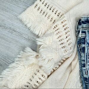 Stylish brown shawl with fringe details. Perfect for layering.Available in two colors brown and cream