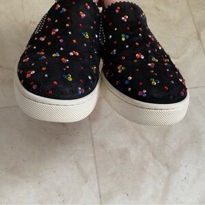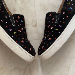 $1345 Christian Louboutin Made in Italy Black Suede Crystal Sneakers Size 5/35