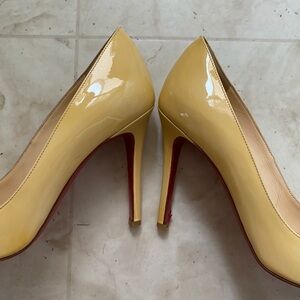 $875 Christian Louboutin Made in Italy Dolly Yellow Patent Leather Pump Heels 7