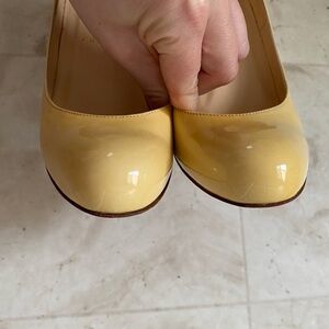 * Made from patent leather in light yellow color, round toe, 3.75” heels.