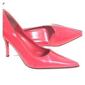 These red patent leather pumps are hot very pointy toe made by wild diva size 6 1/2 fits more like a size 7