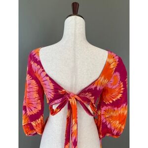 Farm Rio Tie Back Side Cut Printed Linen Jumpsuit - Size Small