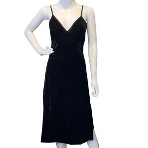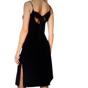 Band Of The Free Girl Crush Black Velvet Midi Dress Small Ribbon Tie Slit Glam