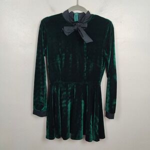 Valfre Velvet Bow Collar Mini Dress Womens Small Dark Green Long Sleeve Party