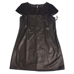 Kensie Dresses Lace Cap Sleeve Faux Black Leather Evening Plus Size Dress 16