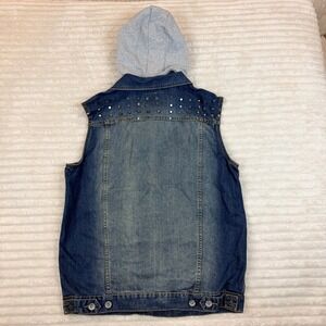 Victorious Mens Studded Denim Vest with Hood Blue Sleeveless Jean Jacket 2XL