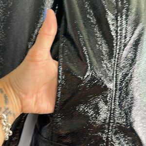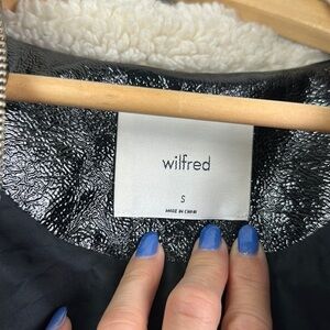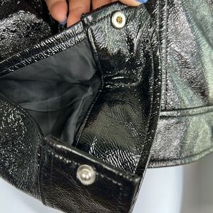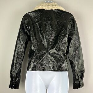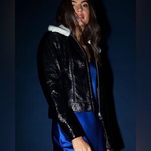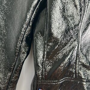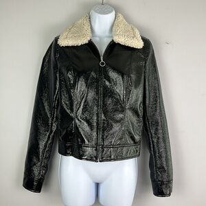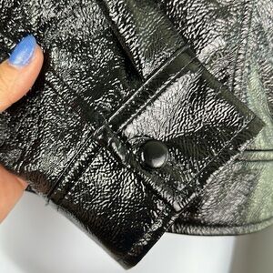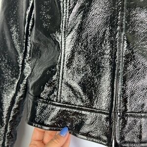 Aritzia Wilfred “Tempest” Slim Fit Cropped High Shine Black Vinyl Vegan Cruelty Free Lined Jacket Fall Trendy