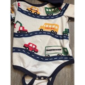 Keywords: baby outfit, toddler clothes, car print, bus print, truck print, road print, transportation theme, baby gift, playwear, cozy set, baby boy, baby girl, long sleeve, hat included