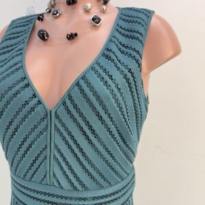 J Crew Dress Womens 2 Green ( Emerald Green) Eyelet V-Neck Fit + Lined Coastal Sleeveless