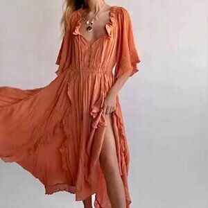 Free People FP Beach Hailee Sweater Midi Dress NWT Small Aged Terracotta Cotton