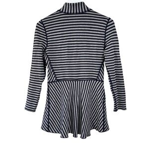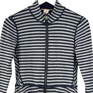 Soft surroundings navy blue gray striped Soft zip up Sweater Women size XS
