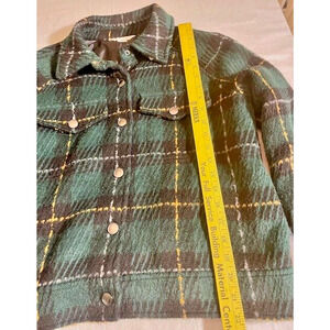 This Christopher & Banks button-up shirt is a stylish addition to any wardrobe. The green and black plaid pattern color make it perfect for casual and travel occasions. Its long sleeves and casual sleeve type provide comfort and versatility, while the flannel fabric type ensures durability. The shirt features a button closure, regular fit, and pockets for added convenience. It is machine washable, making it easy to care for. This shirt is a great choice for any woman looking for a basic yet stylish top.